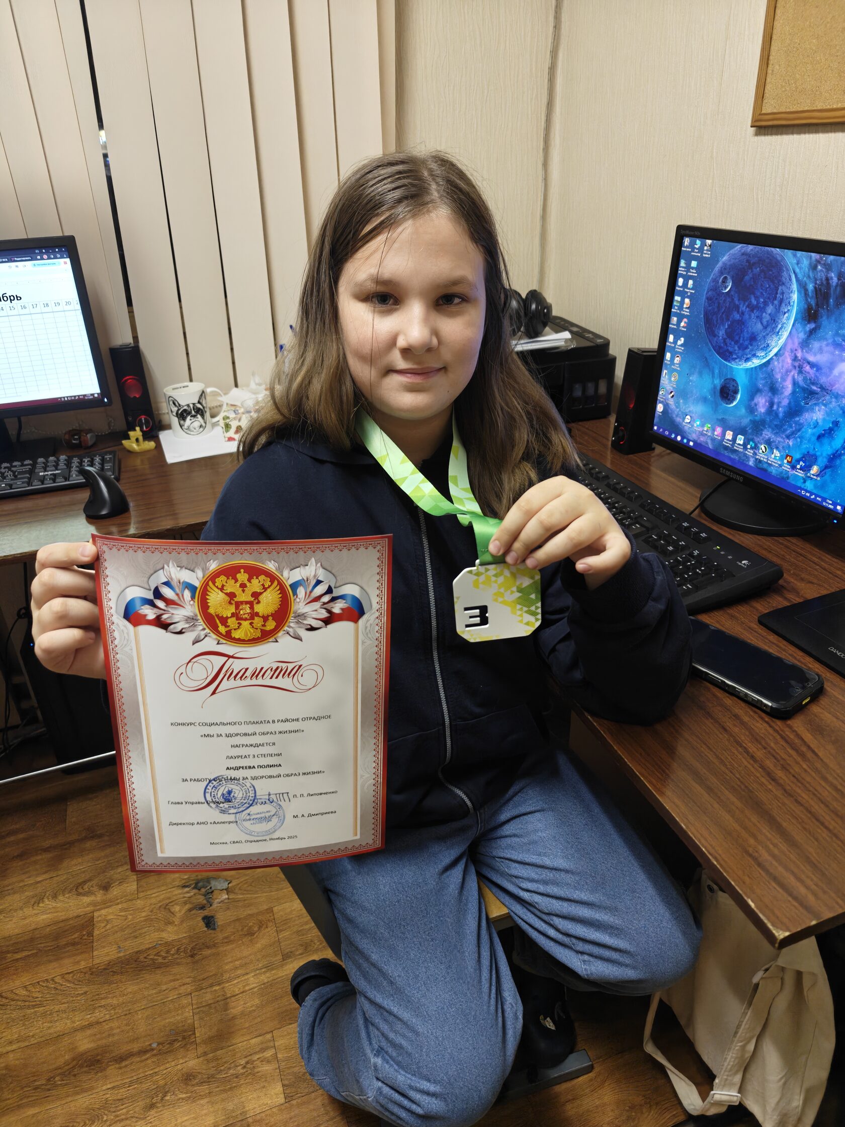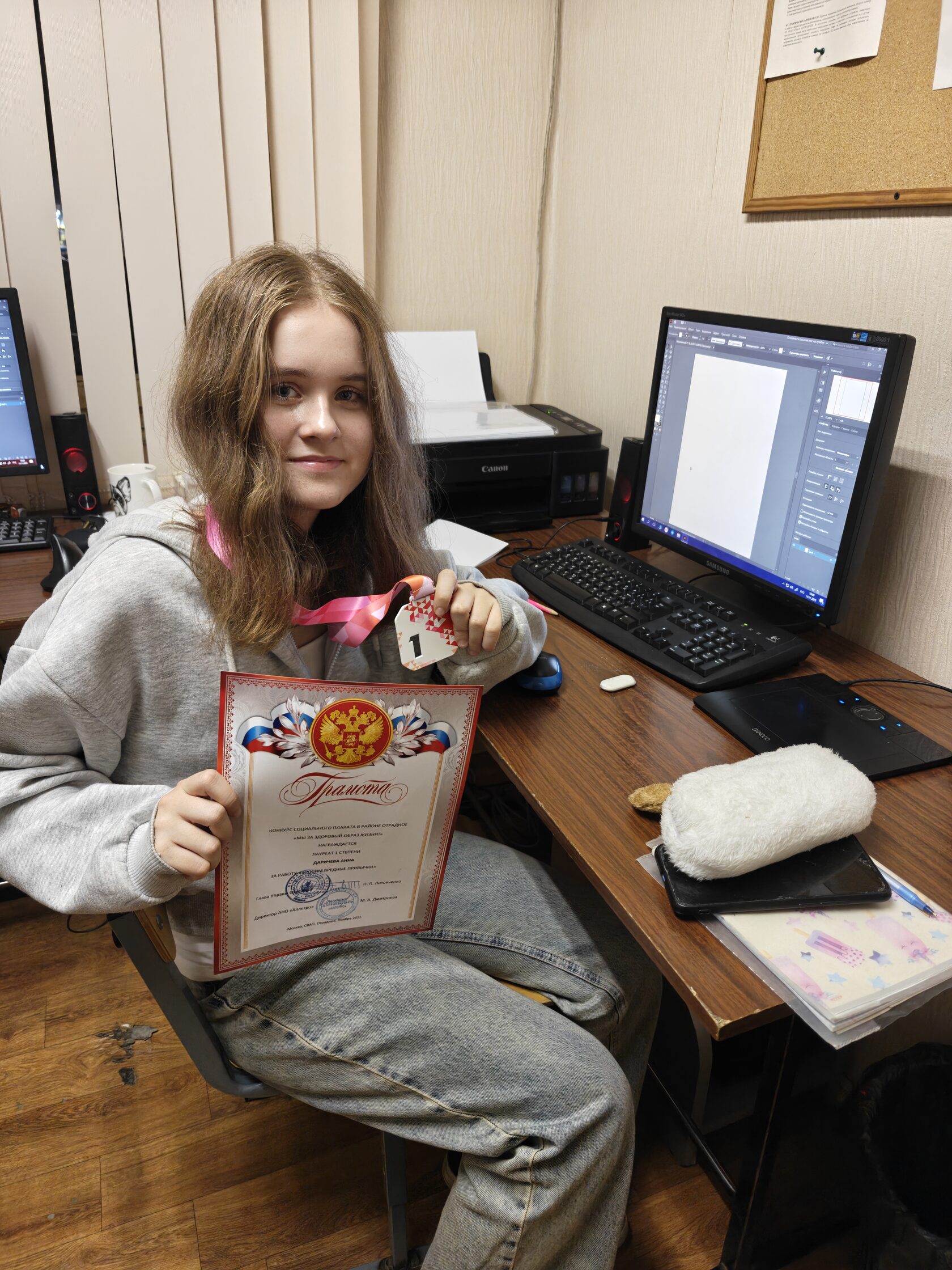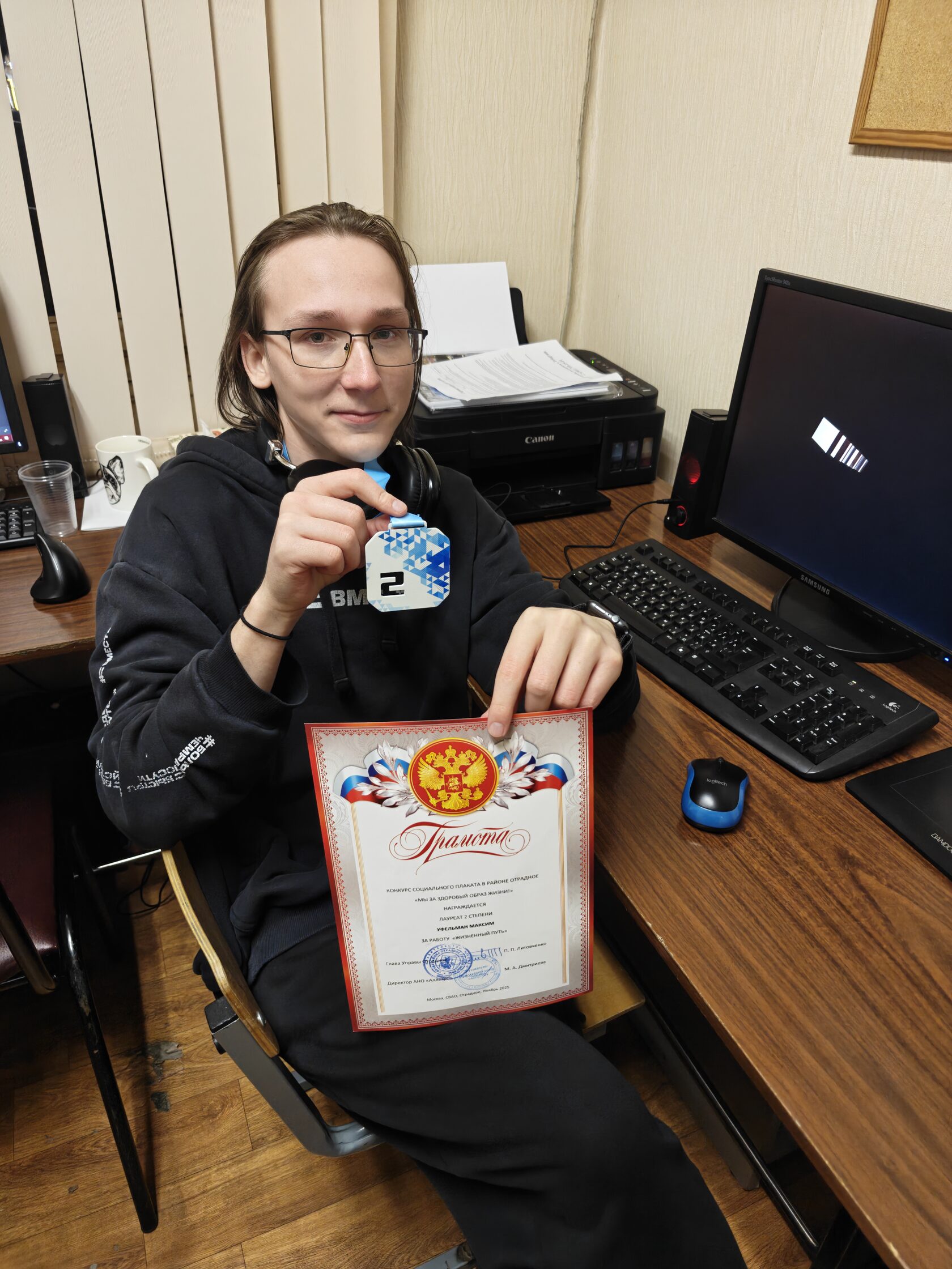 В Музыкально-Эстетическом центре "Аллегро" состоялся районный конкурс социального плаката "Мы за здоровый образ жизни!". Все участники Компьютерной студии центра "Аллегро" были награждены дипломами и медалями. Выражаем благодарность за профессиональную подготовку руководителю студии Компьютерной графики - Дмитриеву Филиппу Ивановичу.